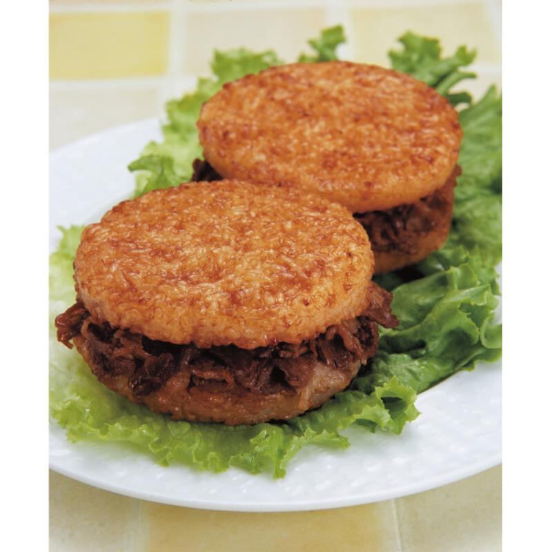 ■叙々苑特製だれで味付けした焼肉とライスがドッキング!国産牛と国産米を使い、叙々苑秘伝のたれで味付けしたライスバーガー。朝食や軽食にもおすすめ。