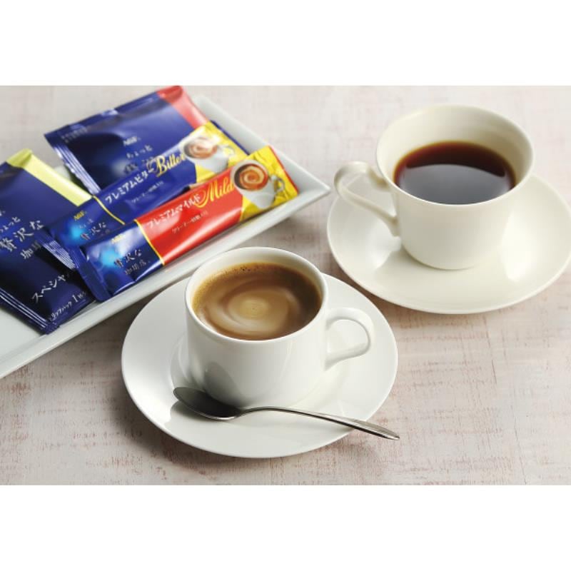 商品内容:●ちょっと贅沢な珈琲店 ドリップパックスペシャルブレンド7g×2、モカブレンド7g×1、スティックコーヒー(プレミアムビター・マイルド各7g×14)