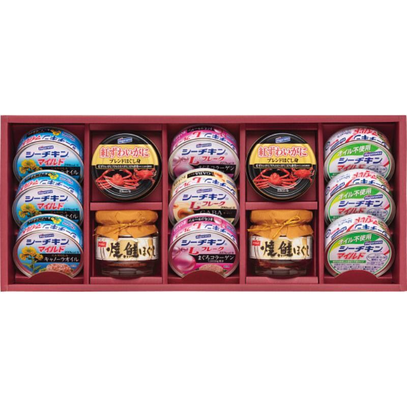 人気のシーフードをバラエティ豊かに詰合せました。シーチキンLフレーク(コラーゲン入り・GABA入り)はギフト専用シーチキンです。