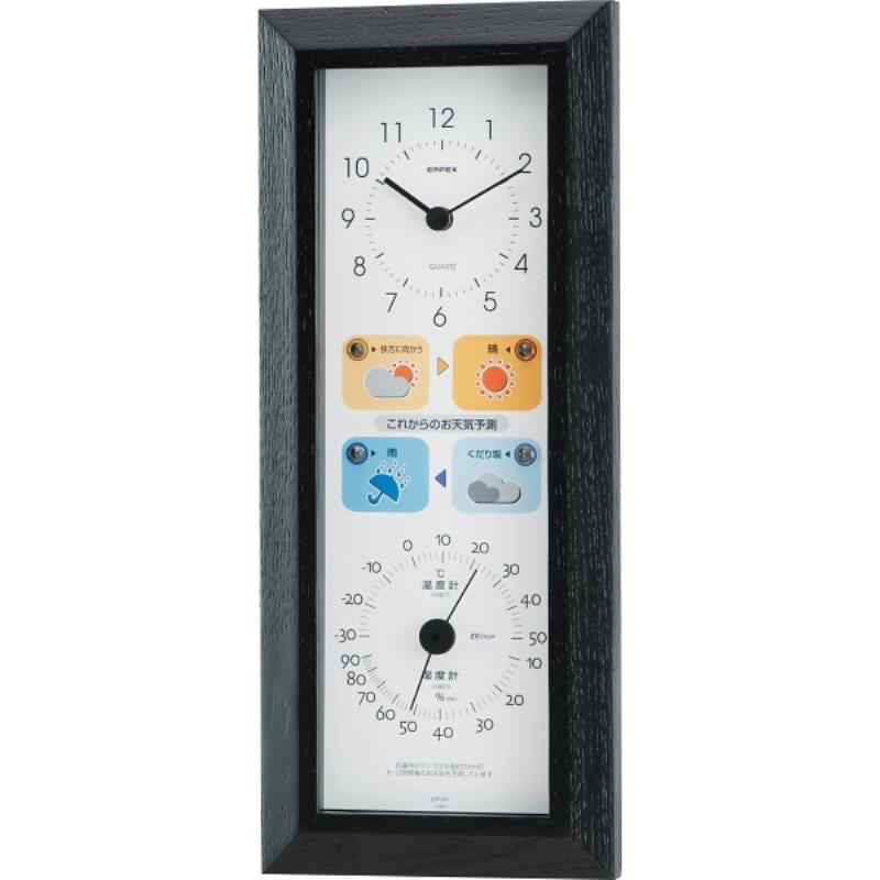 気圧の変化から約半日後のお天気を予測してランプでお知らせをする温度・湿度計付き掛時計。