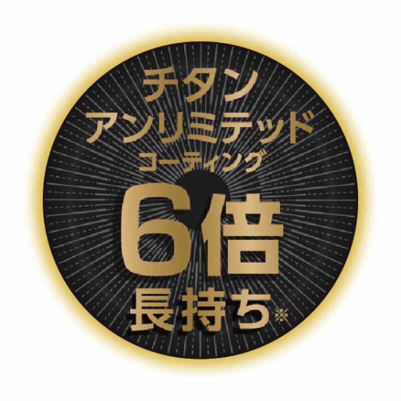 チタンコーティングで金属ヘラ使用可能で、耐久性が大幅に向上。適温を知らせる「お知らせマーク」がより分かりやすいデザインになりました。