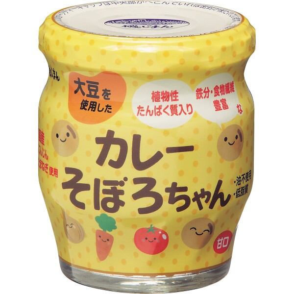 そぼろ状の大豆ミートを甘口でお子様向けのカレー味にしました。野菜嫌いなお子様にも食べて頂けるよう、にんじん、玉ねぎを細かくカットして入れております。