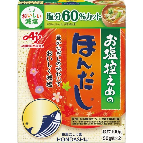 商品内容:●味の素KK 「お塩控えめの・ほんだし」 100g箱