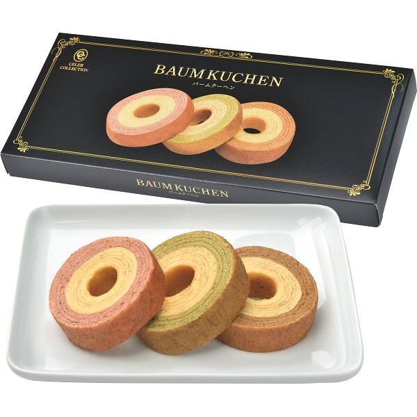 3種類の2層バームクーヘンが入ったカラフルなセット。