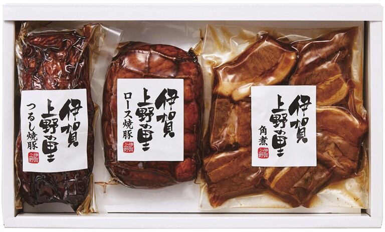 商品内容:つるし焼豚(約170g)・ロース焼豚(約175g)・豚角煮(約180g)×各1