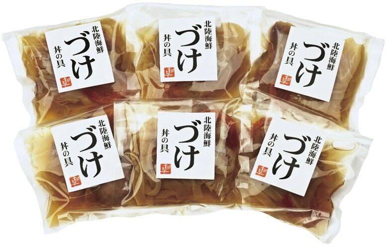 北陸で水揚げされた魚(甘えび、ぶり(ふくらぎ)、いか)を白醤油ベースのたれに漬け込み、海鮮丼の素に仕上げました。小分けギフトとしても重宝します。
