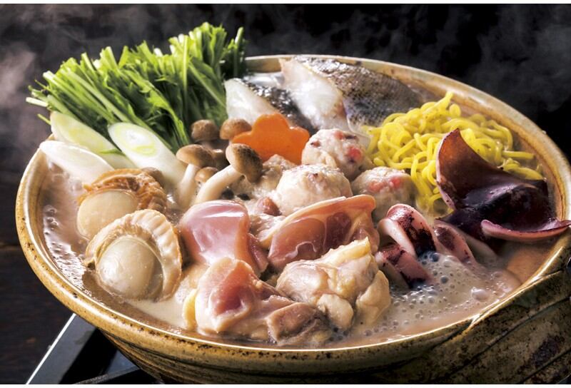 北海道産の「鶏もも肉」を主役に「真いか」や「帆立」、「助宗鱈」等の海鮮素材を詰め合わせました。鶏白湯鍋のたれは各素材とよく絡み、鶏の旨味たっぷりです。