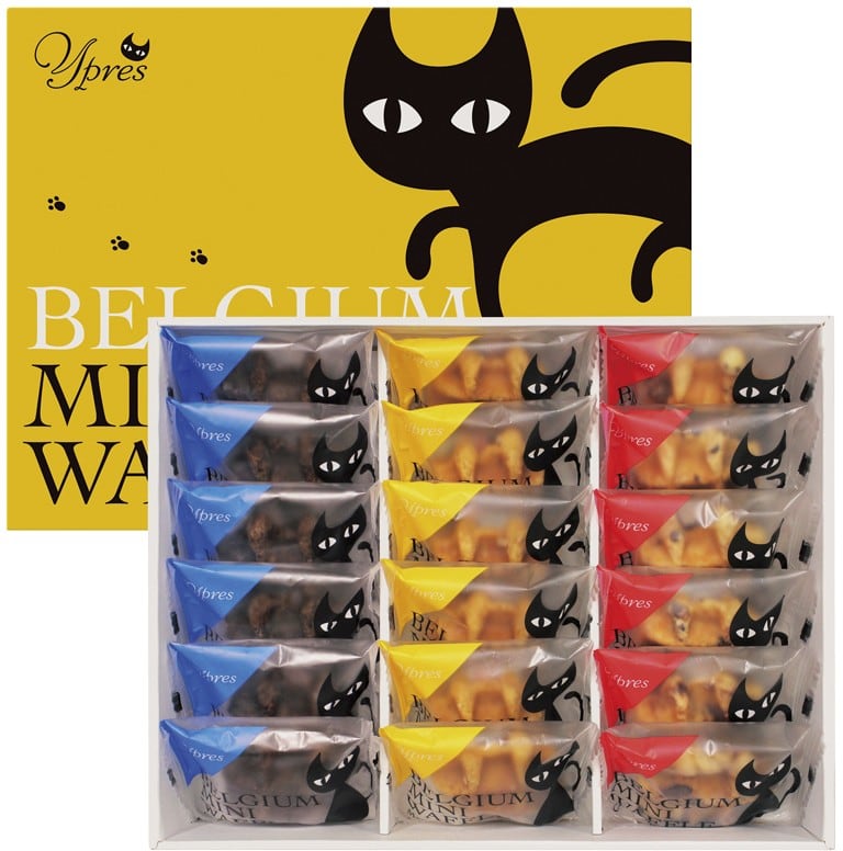 小さめサイズのワッフルがたくさん入った、みんなで楽しめるギフトです。メープル・チョコレート・チョコチップの3種類をご用意。かわいい黒猫のパッケージが楽しさを演出します。