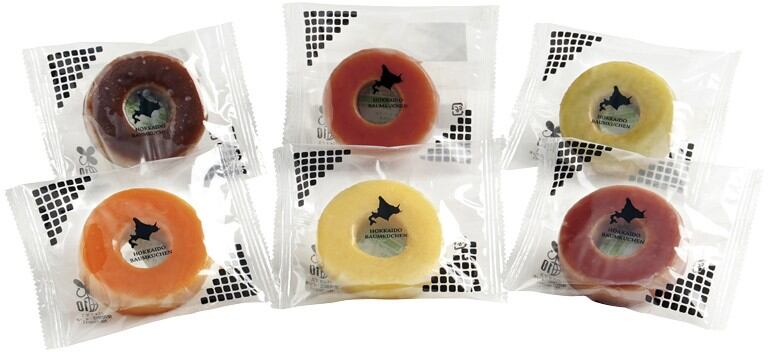 北海道産の小麦と生クリームを使用した柔らかな食感のバウムクーヘンにカラフルな餡をコーティングしました。小麦の風味と餡の程よい甘さ・フルーツの香りが楽しめます。