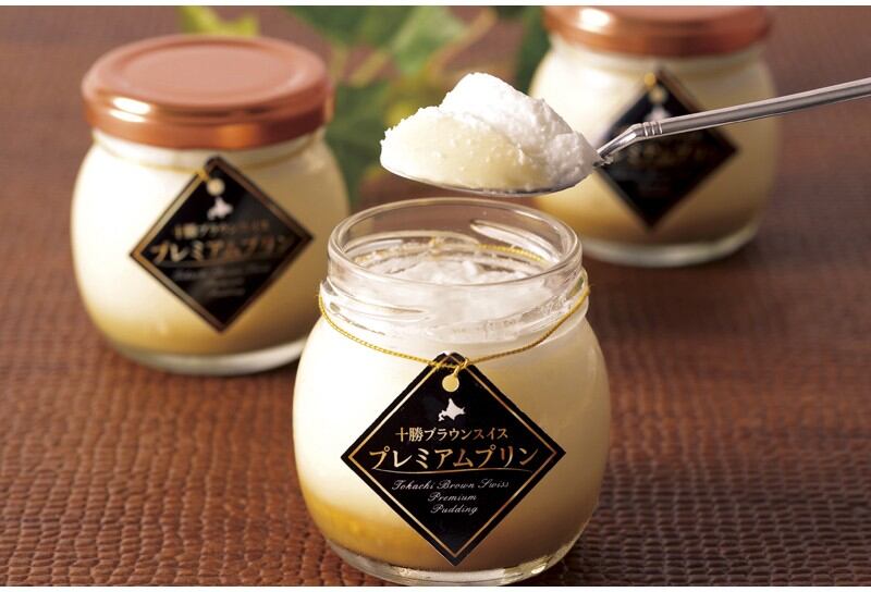 十勝橋本牧場の希少なブラウンスイス牛の生乳を使用したプリンに上はクリーム、下はカラメルを入れました。