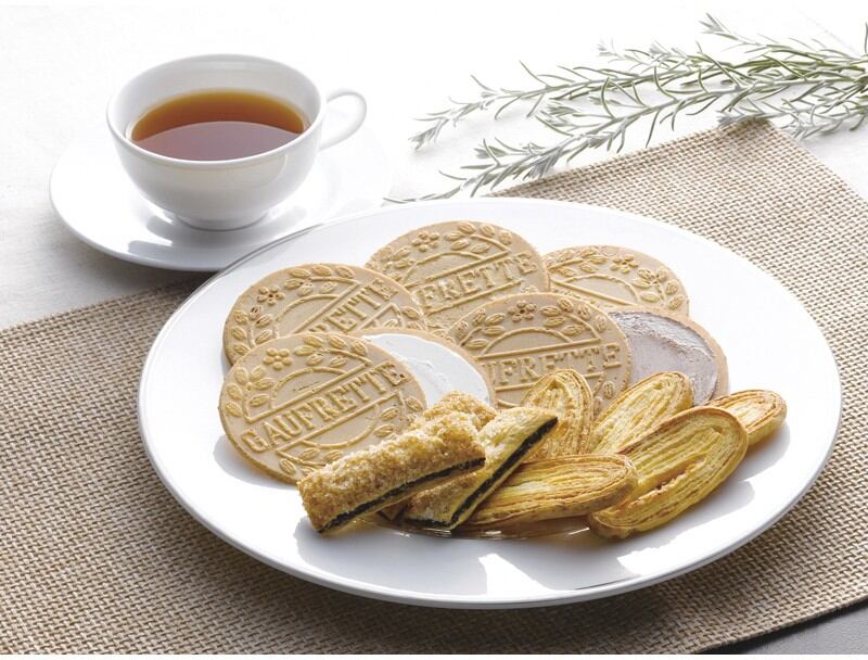 商品内容:ゴーフレット(チョコ)×5、ゴーフレット(バニラ)×10、アーモンドパイ・ショコラスティックパイ×各4