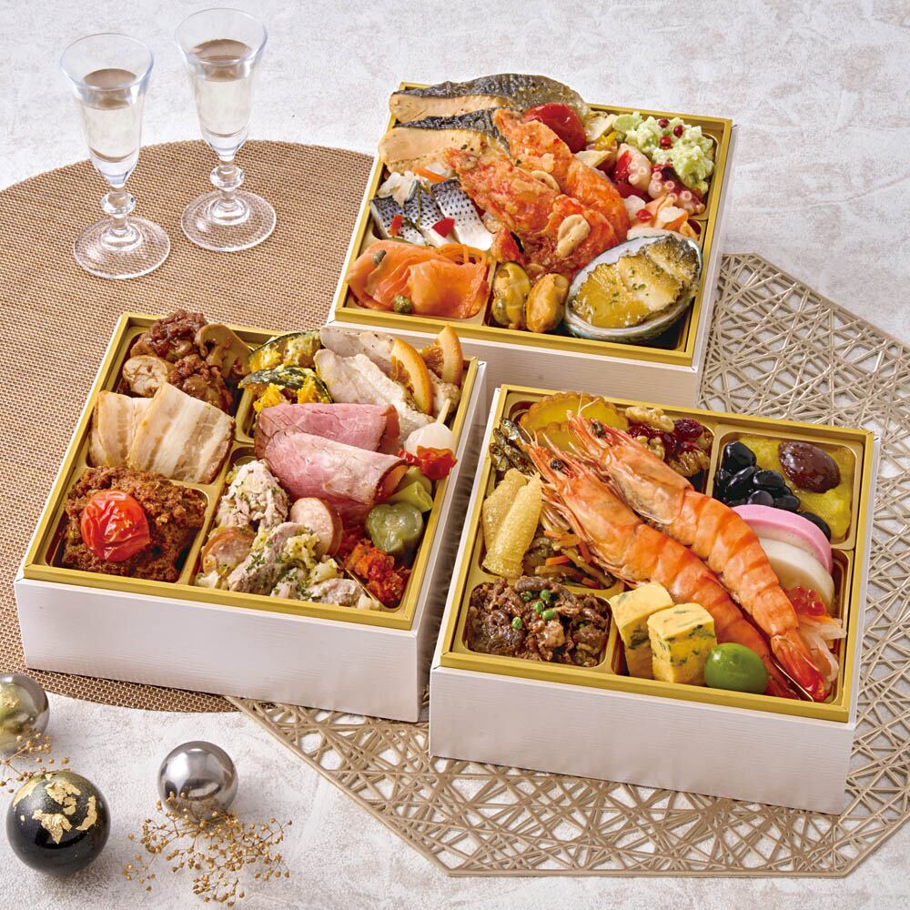 現代の名工を受賞した「銀座トトキ」十時シェフが監修したおせち。一の重は、定番の和風おせち。二の重は、肉をテーマにした肉おせち。三の重は、海鮮をテーマにした海の幸おせちが楽しめる三段おせちです。 【数量限定】