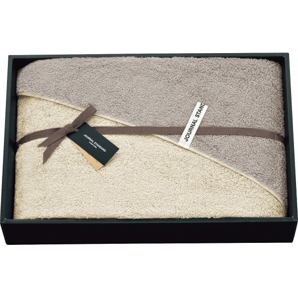 シンプルなリバーシブルデザインのタオルギフトです。タオルの中央に引っ掛けられる織ネーム付きです。