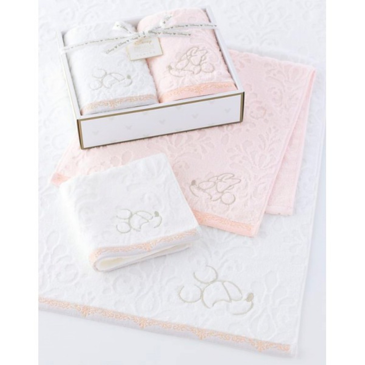 気品あふれるミッキーとミニーのアートをラメ刺繍で表現し、エレガントな模様で全体を華やかにデザインしました誰にでも愛されるカラー展開で詰め合わせされたプレミアムギフトは、様々なシーンでおすすめです。