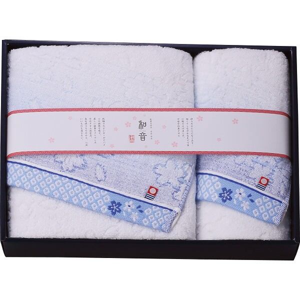 なごみね(桜) バス・フェイスタオルセット ブルー