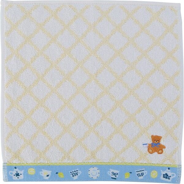 ロッティ 婦人タオルハンカチ チェック×くま刺繍イエロー RTT-64 YE