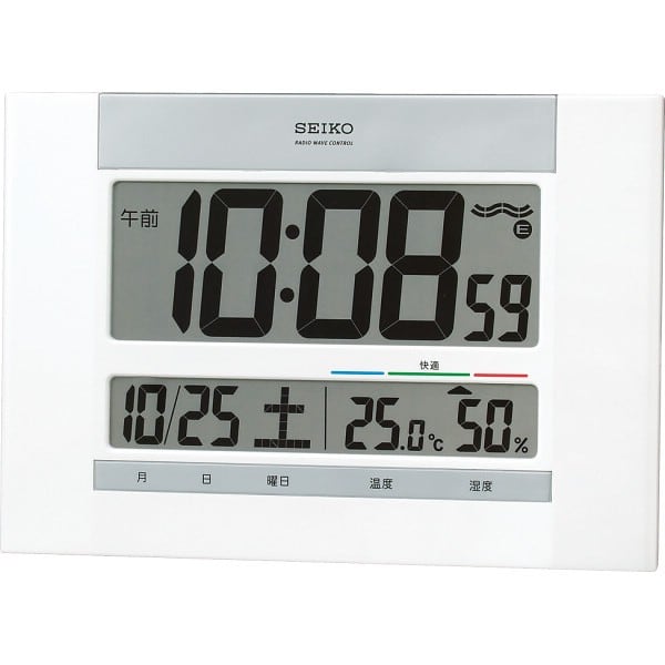 商品内容:●快適度表示●12時間/24時間切替式●フルオートカレンダー表示・温度・湿度表示●掛置兼用タイプ●単3乾電池2本付(モニター電池)