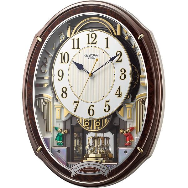 ダイナミックな動きの新パフォーマンス、キッズ・童謡メロディを含む全48曲搭載です。毎正時、メロディ演奏とともに文字板が開き、奥の回転板とベル飾りがくるくると回ります。