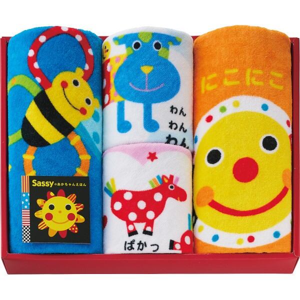 ●創業以来、40年にわたって世界のママ&ベビーに愛されるサッシー。その絵本シリーズの中でも人気を集める『にこにこ』『がおー』をモチーフに、見て触れて使って楽しいタオルシリーズを作りました。