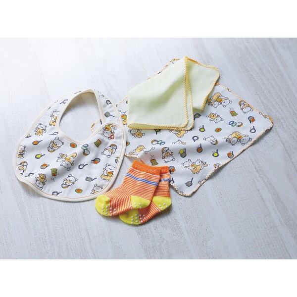 商品内容:●スタイ×1、ハンカチ×2、ソックス×1●対象年齢:0歳〜3歳まで(個人差あり)