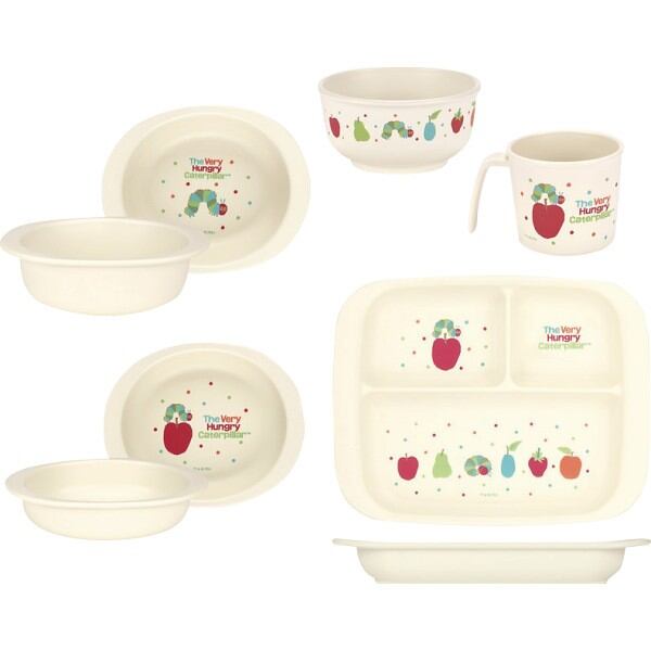 ●離乳食初期から長く使える。耐久性に優れ、割れにくい電子レンジ・食洗器対応の食器セット。