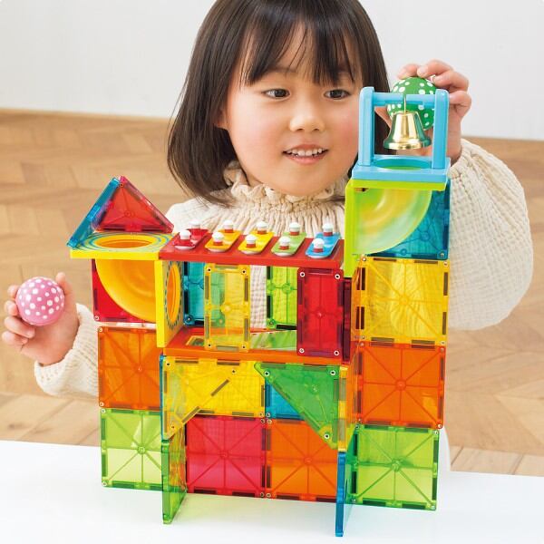 磁石の力で「あそべる!」「つくれる!」「ひらめき」が育つ!人気のボールコースターに「サウンド」がプラスで、動きと音の遊びが両方楽しめます。
