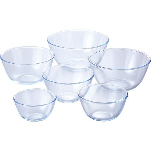 商品内容:●ボウル500ml(約12.8φ×7cm・500ml)・ボウル800ml(約15φ×8.1cm・800ml)・ボウル1l(約16.9φ×8.8cm・1l)・ボウル1.5l(約19φ×9.5cm・1.5l)・ボウル2l(約20.9φ×10.3cm・2l)・ボウル2.5l(約23φ×11cm・2.5l)×各1●オーブンレンジ可・電子レンジ可