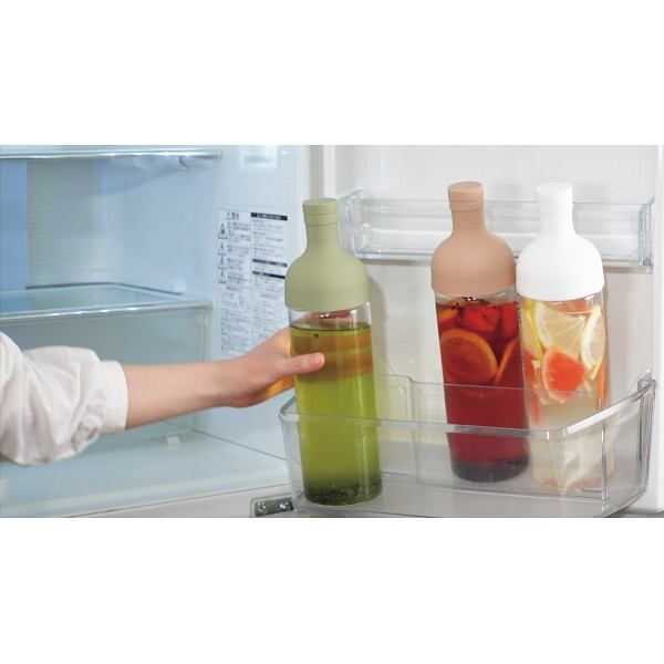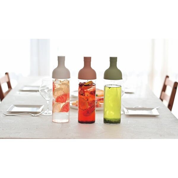 ワインボトル型の水出し茶ボトル。注ぎ口部分にフィルターがセットされているのでそのまま注ぐことができます。