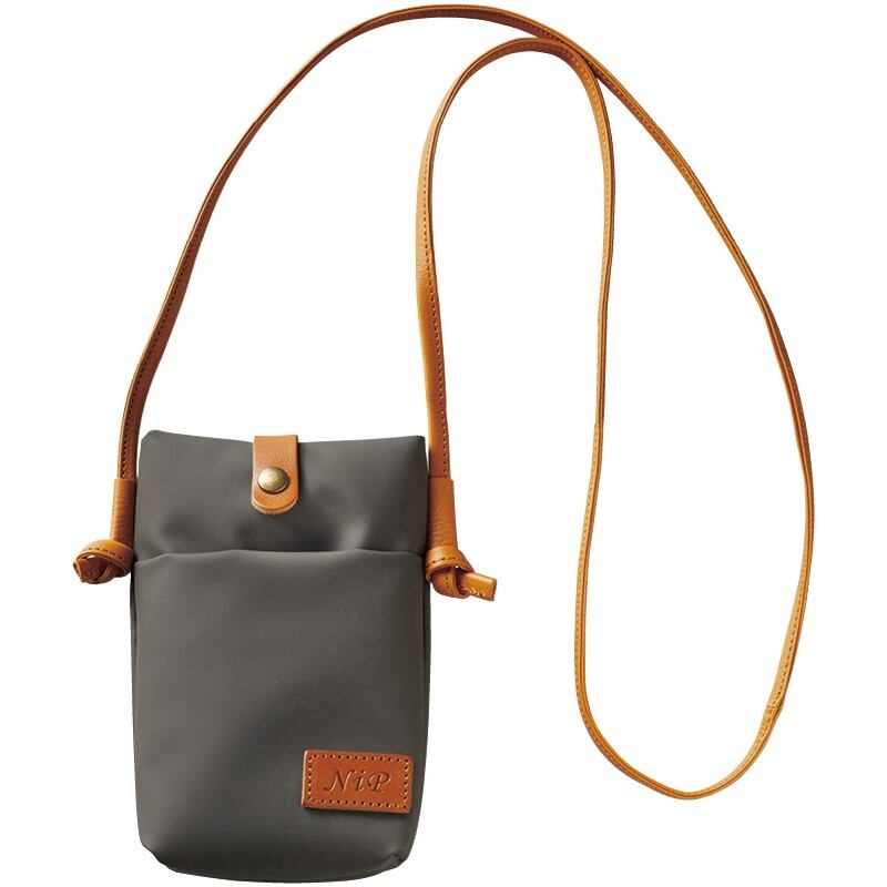 環境に優しい素材のポシェットです。ショルダーの結で長さ調節出来ます。ポリウレタンは濃いめのグレーです。ヌメ革は特性上、画像と色合いに差がある場合があります。
