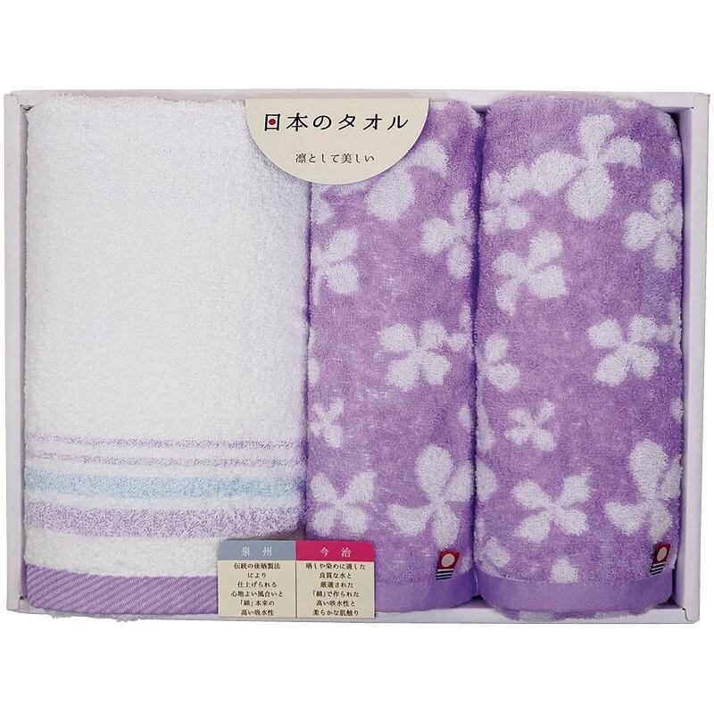商品内容:泉州バスタオル(60×120cm)・今治フェイスタオル・泉州フェイスタオル(各34×75cm)・今治ウォッシュタオル(34×35cm)×各1