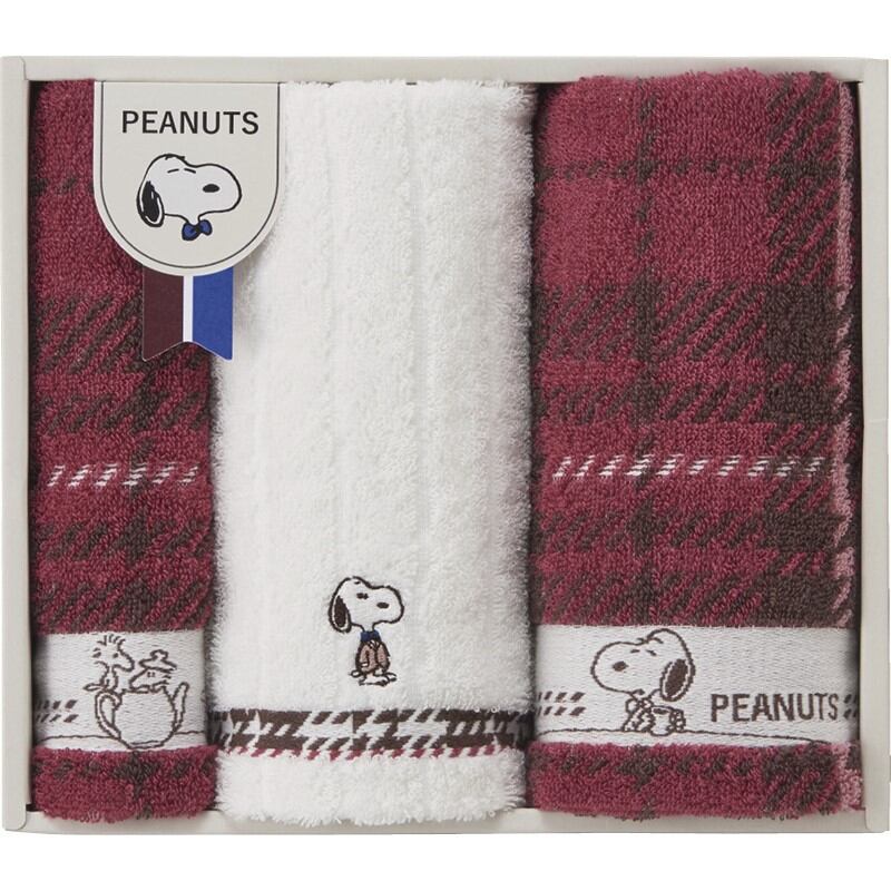 スヌーピー フェイスタオル2P&ウォッシュタオル チェック TT84403051