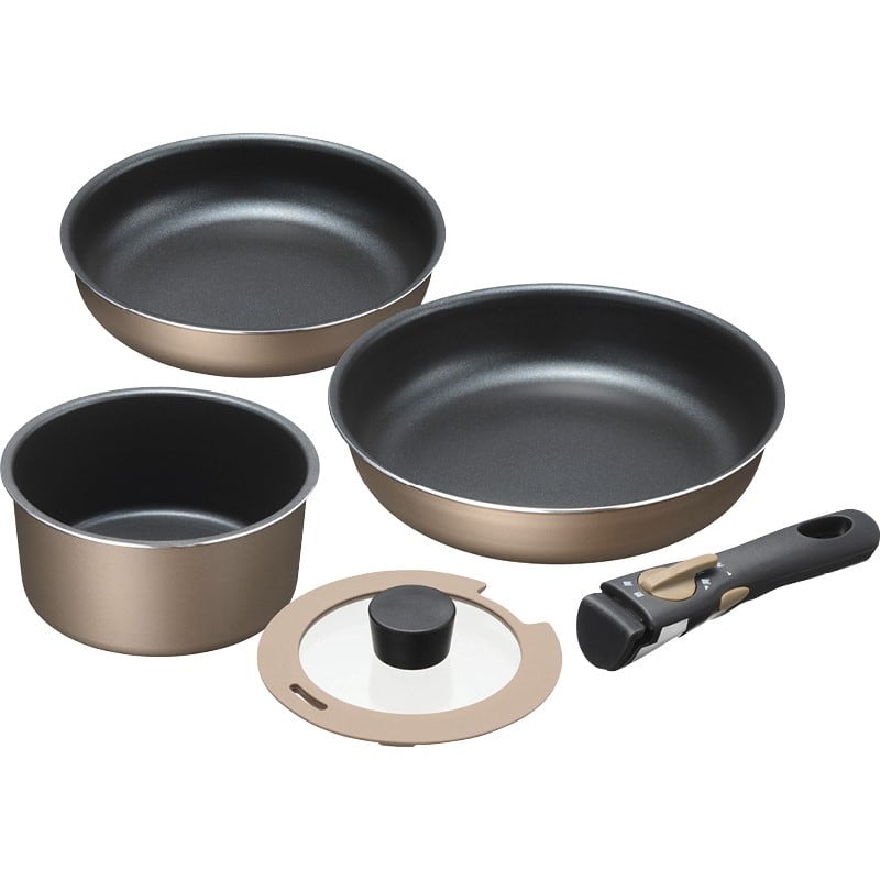 収納に便利な着脱ハンドル式鍋・フライパンセット