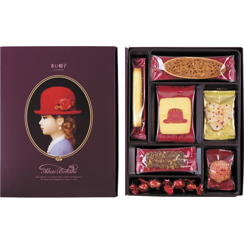 商品内容:ホワイトボール×5、ナッツベリーハート・バニラアーモンド・チョコクランチ・ラングドシャロール・ストロベリークッキー・レッドハット×各2