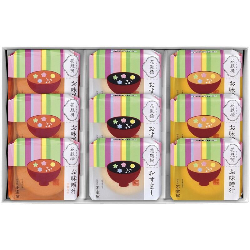 商品内容:花麩椀(おすまし・お味噌汁・お味噌汁田舎みそ)×各3