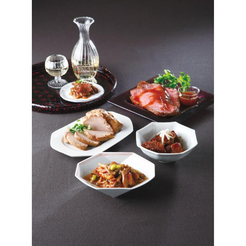 商品内容:●賛否両論(サーロインローストビーフ350g、香味叉焼180g、牛とろとろ煮・鶏肉と野菜の炊き合わせ各150g、牛しぐれ煮ごぼう55g)、ローストビーフソース(和風ゆず風味)60g