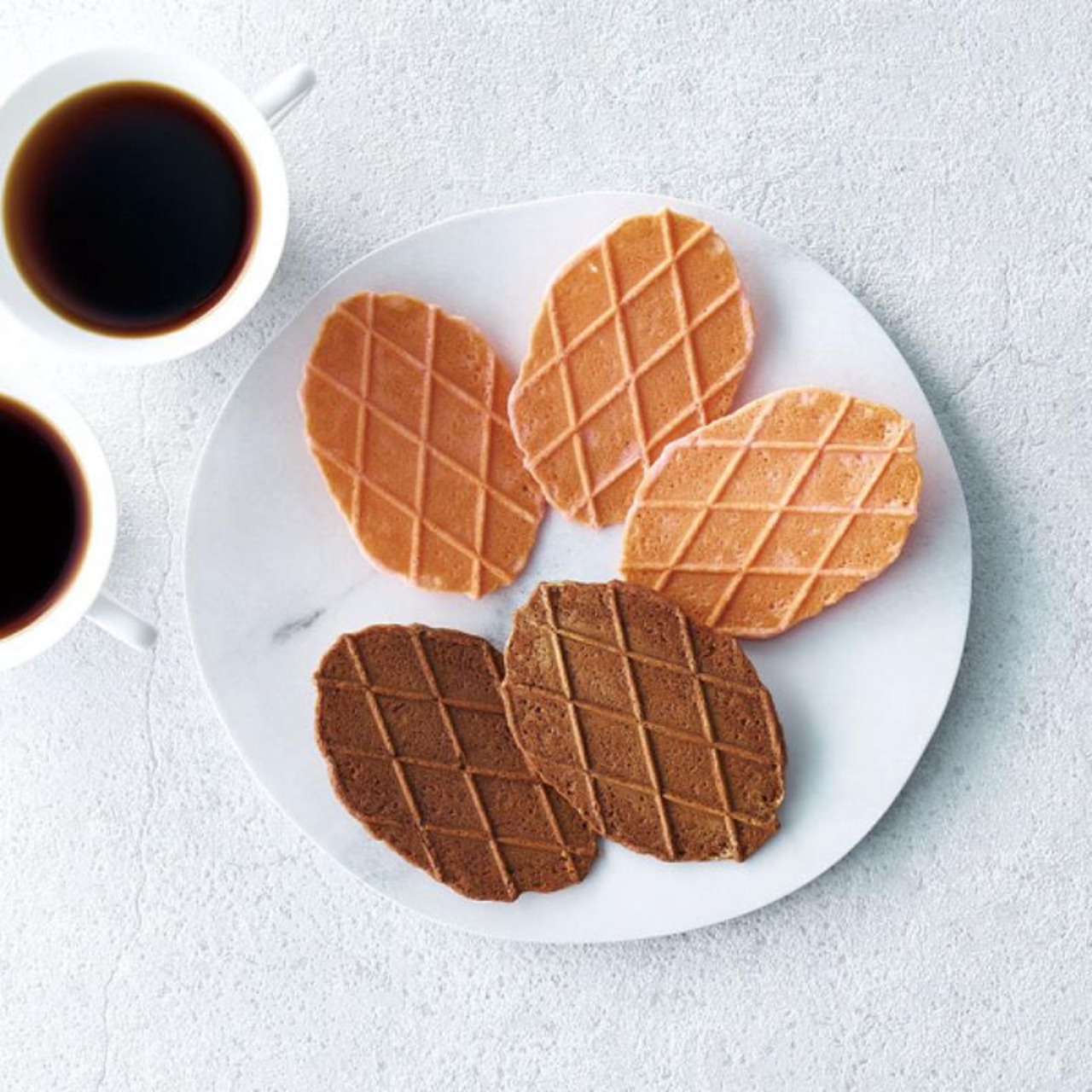 サクッと軽い食感のワッフルクッキーに、コーヒーを合わせたカフェタイムセット。