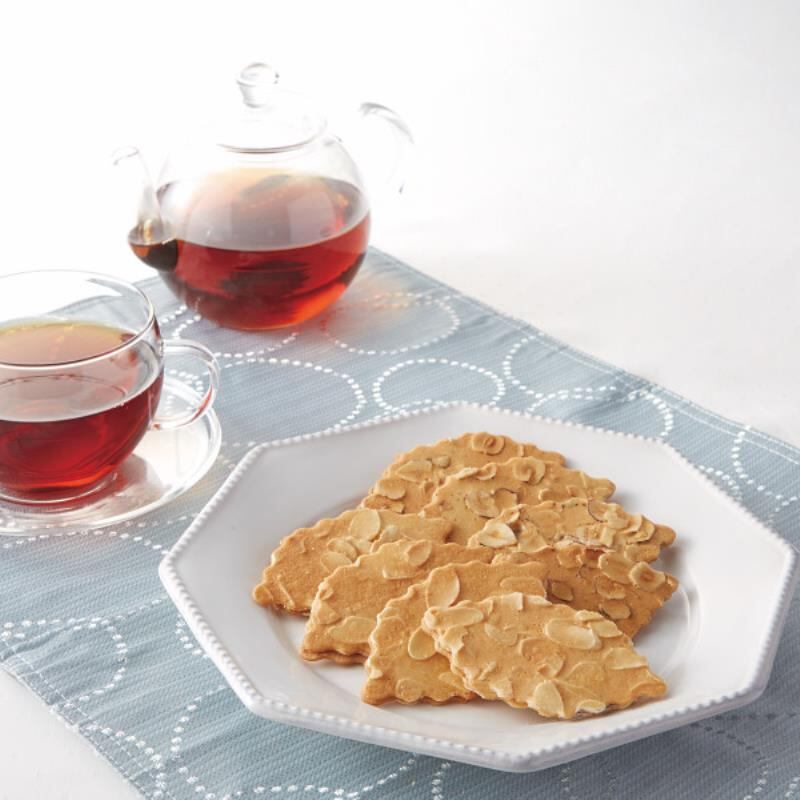 繊細なクッキーに、スライスナッツをぎっしり敷き詰めてパリッと香ばしく焼き上げました。それぞれの美味しさを引き立てるチョコレートを吟味してサンドいたしました。