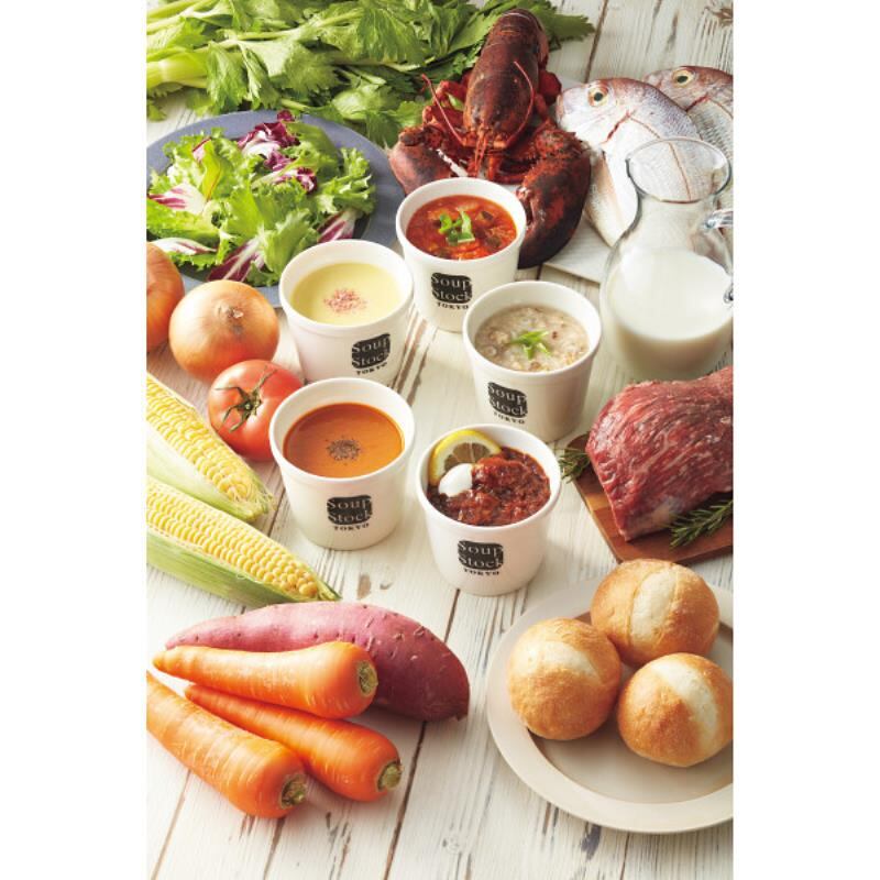 スープストックトーキョーで人気のスープ8種とパンを詰合せたセットです。スープと相性の良い国産小麦の全粒粉ロールでお店の味をご自宅でお楽しみいただけます。