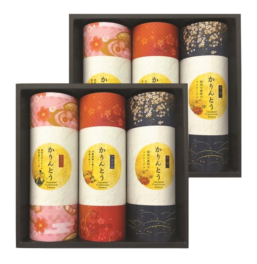 商品内容:沖縄黒糖かりんとう 50g×2袋、きなこかりんとう 50g×2袋、珈琲かりんとう 50g×2袋