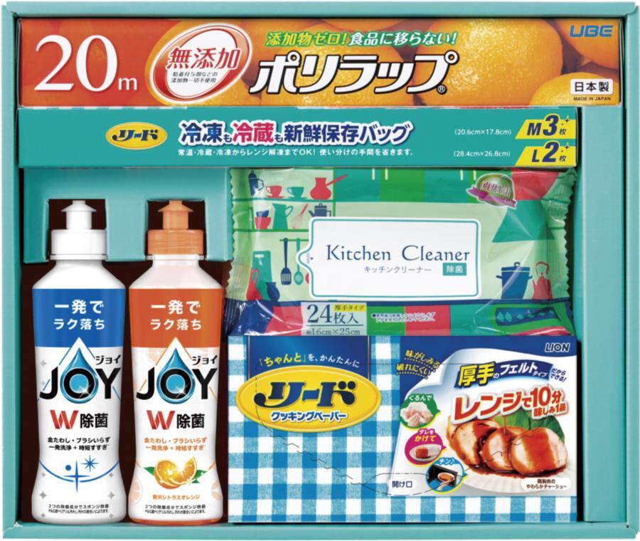 商品内容:P&G 除菌ジョイコンパクト170ml、P&G 除菌ジョイコンパクトシトラスオレンジの香り170ml、ライオン リード冷凍も冷蔵も新鮮保存バッグM3L2枚、ライオン リードクッキングペーパー小8枚、キッチンクリーナー24枚、ポリラップ30cm×20m ×各1