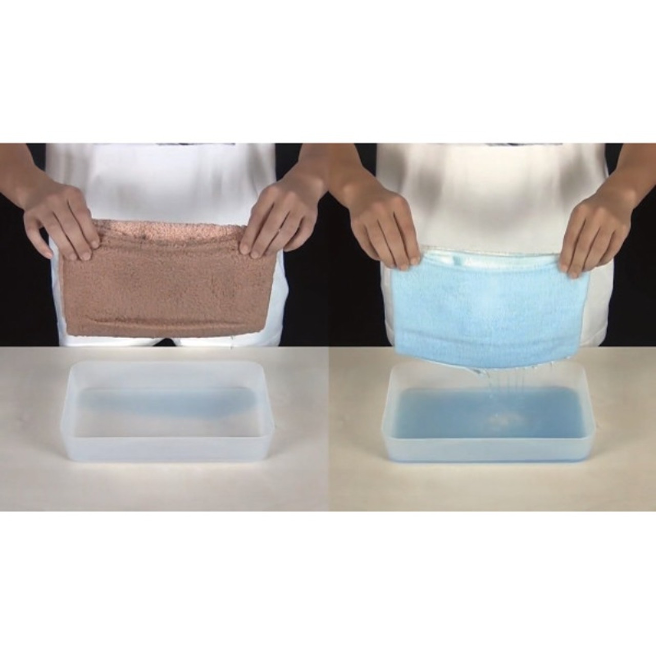 「1秒タオル」とは、タオルを1cm角に切り取った試験片を水に浮かべた時、1秒以内に沈み始めるタオルのことです。このシリーズは公的機関である東京都立産業技術センターでも同様の試験を実施し、「1秒タオル」の認定を受けているタオルシリーズです。