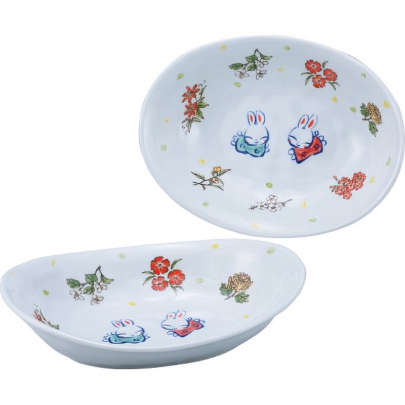 夕立窯 花薫るうさぎ パスタ皿ペア YK768