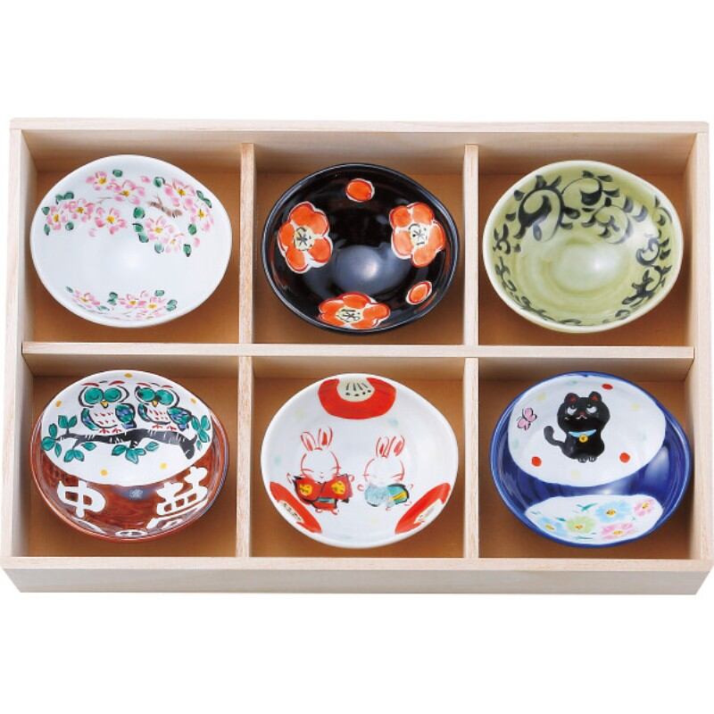 木箱入りでギフトに最適な小鉢セット。柄違いの6種の小鉢が食卓を彩ります。