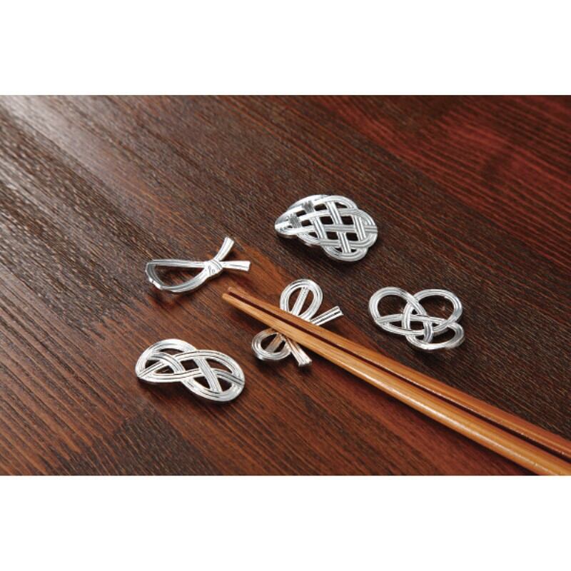 水引きの結びをモチーフにした錫(すず)鋳物の箸置です。やわらかい金属なので、自由な発想でお好みの形状に変形させてご使用いただけます。一つ一つ職人が手作業で仕上げています。