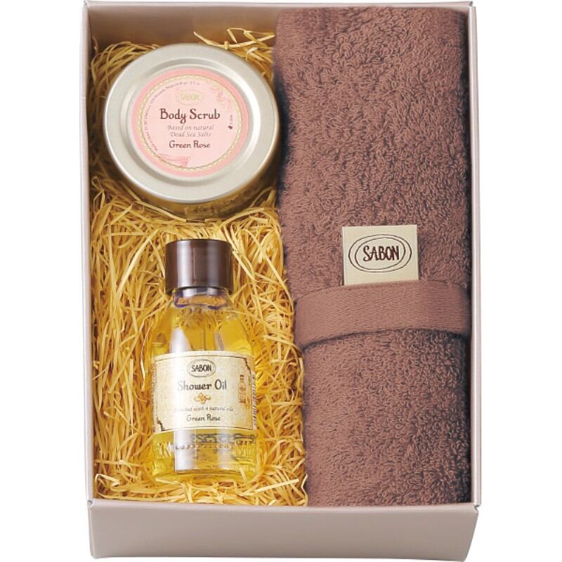 SABON シャワーオイル50ml&ボディスクラブ60g&オーガニックタオル グリーン・ローズ SAB-59