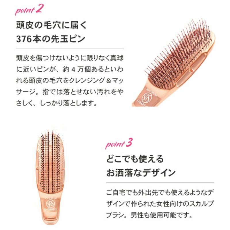 プロも愛用するスカルプブラシ。毎日のシャンプー習慣にブラシをプラスすることで髪のボリューム、パサつき、うねり、切れ毛、枝毛、頭皮の臭いにお悩みの方におすすめです。ショートヘアー、ミドルヘアの特徴に合わせた設計となり、毛玉2段植毛で2種類の硬さの違う376本のピンが髪をすくい上げるので、根元からふんわり立ち上げ、髪にボリュームと艶を出します。ブロー、起床時のアウトバスシーンでもご利用可能です。
