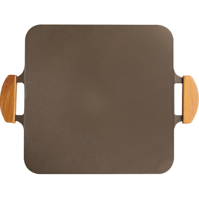 おうちでもアウトドアでも使える木製ハンドルでかわいいカラフルなグリルプレート<ソリッド>。おしゃれな大皿として調理した料理をそのまま食卓に出したり、キャンプをはじめアウトドアシーンにも大活躍です。本体にはセラミックコーティングがされており、耐久性も高く、赤外線効果でじっくりと火が通り熱伝導率が高いので素早く調理が可能。シーズニング不要なので、すぐお使いただけます。
