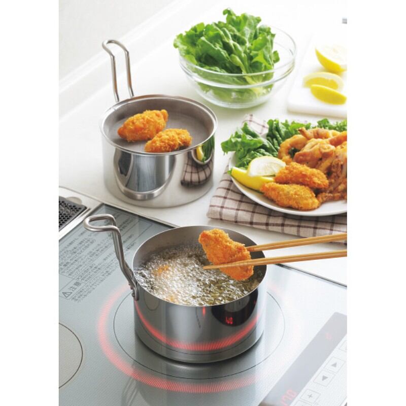 商品内容:●油ポット=容量約1.3l(深さ約8cm)、揚げ鍋=容量約1.3l(深さ約8cm)、網皿付●ガスコンロ可、100・200V電磁調理器対応