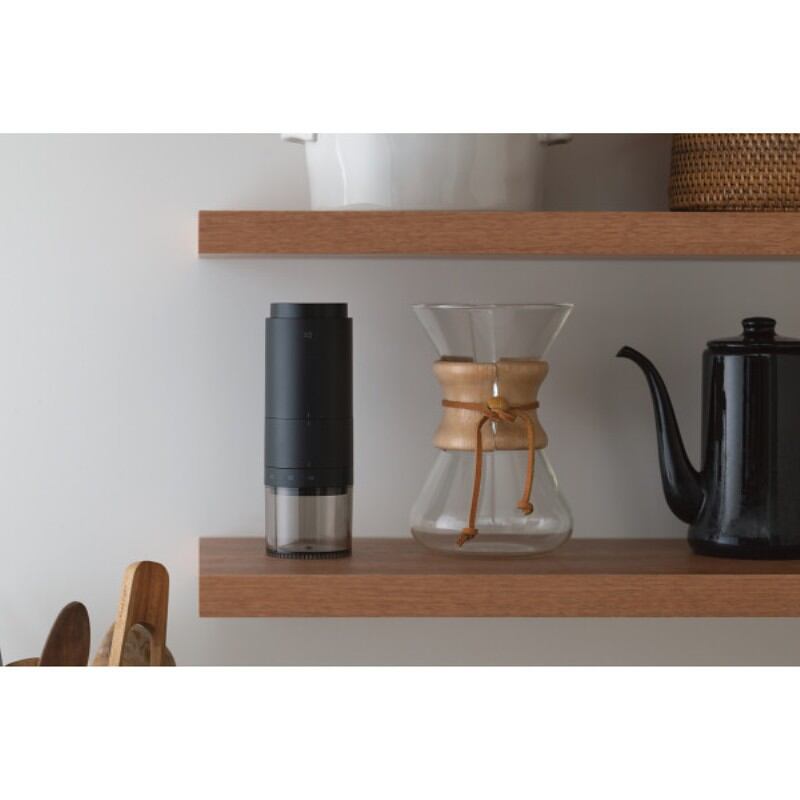 25gの豆を挽くことができます。豆が挽き終わったら自動停止、USB充電式なのでキャンプや野外にも持ち出せます。刃は摩擦熱の少ないセラミック製で、幅広い挽き目に対応できるコニカル式を採用しました。