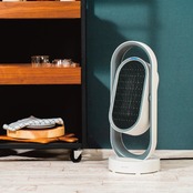 上下左右の首振りが広く温かさをお届けします。ヒーターとファン、2つを切り替えて頂ければ1年通してご使用いただけます。2時間タイマーが自動設定、4時間と8時間の切り替えも可能です。転倒時運転停止スイッチ、サーモスタット、温度ヒューズの安全装置を搭載。リモコン付。